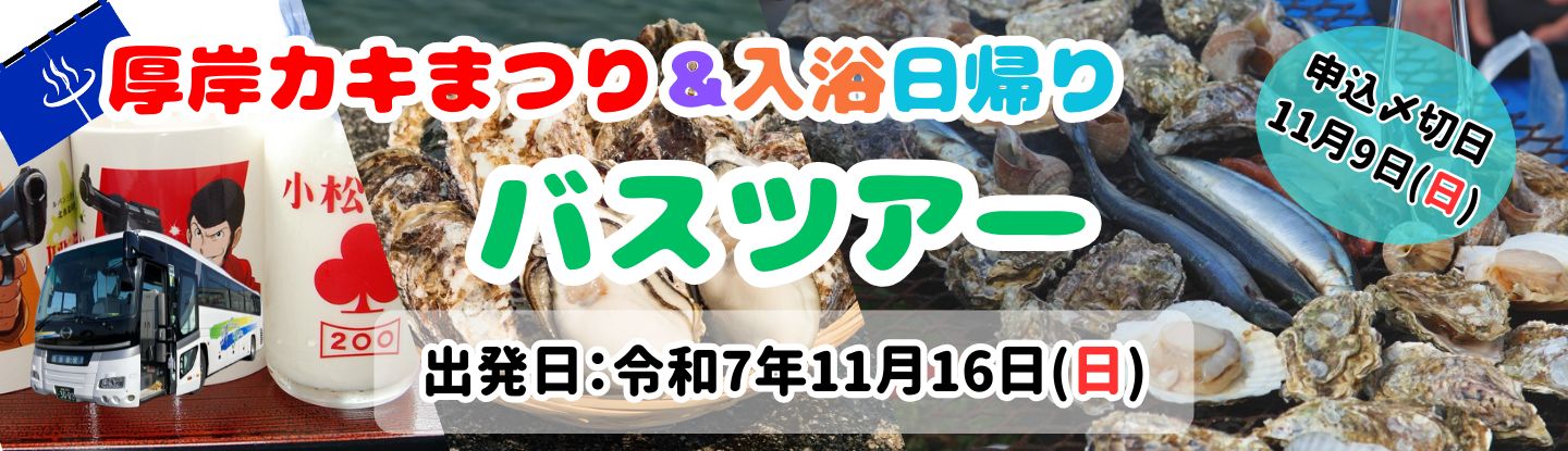 - R7.11月16日(日)『厚岸カキまつり&入浴日帰りバスツアー』開催のお知らせ