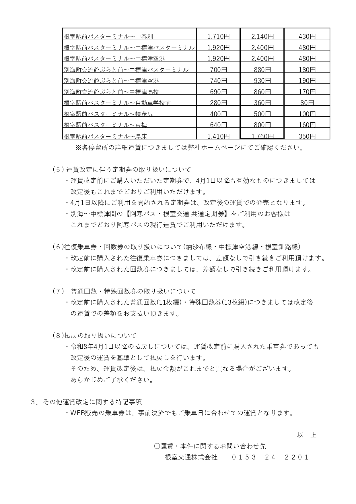 バス運賃改定の詳細について