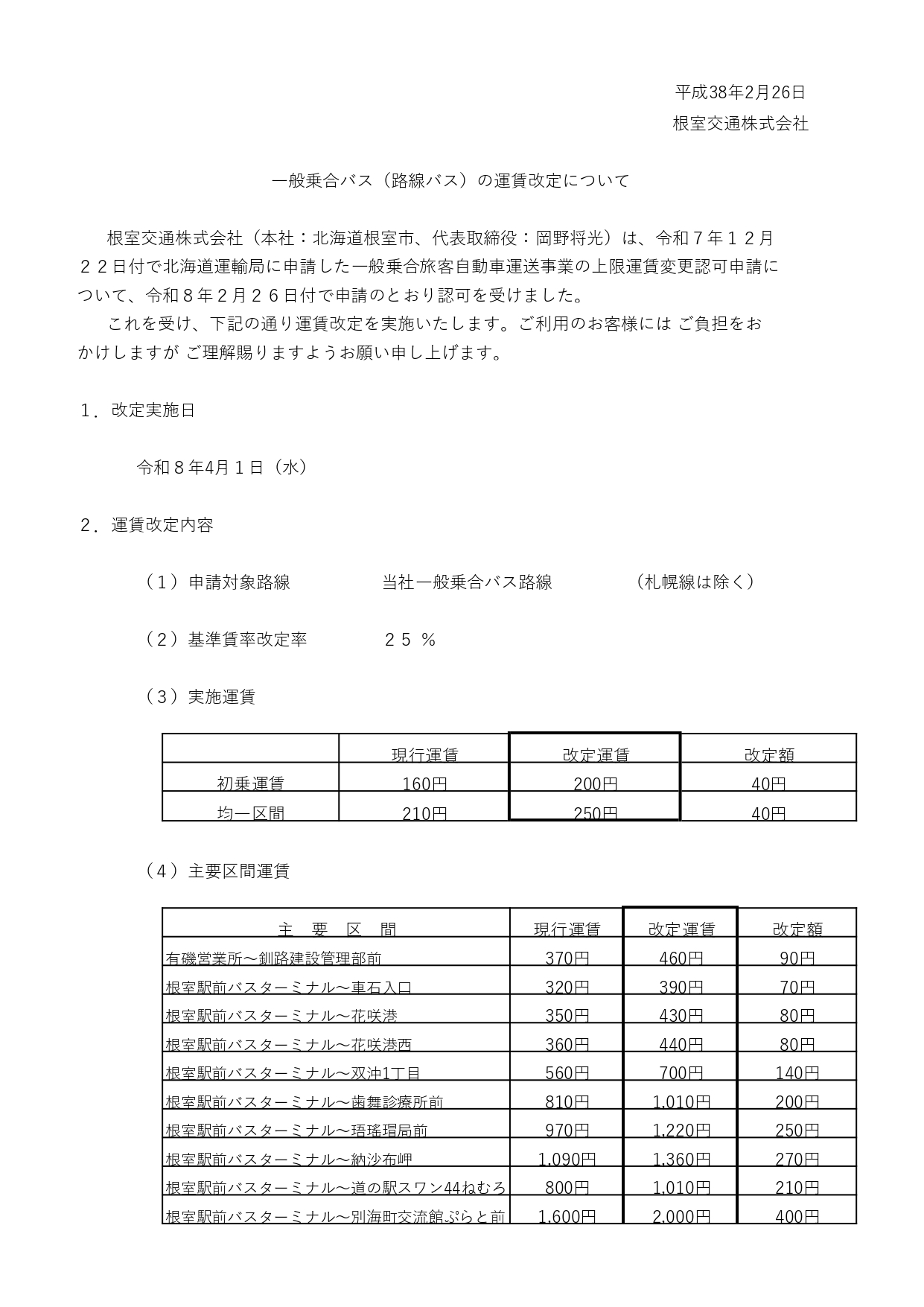 一般乗合バス(路線バス)の運賃改定について